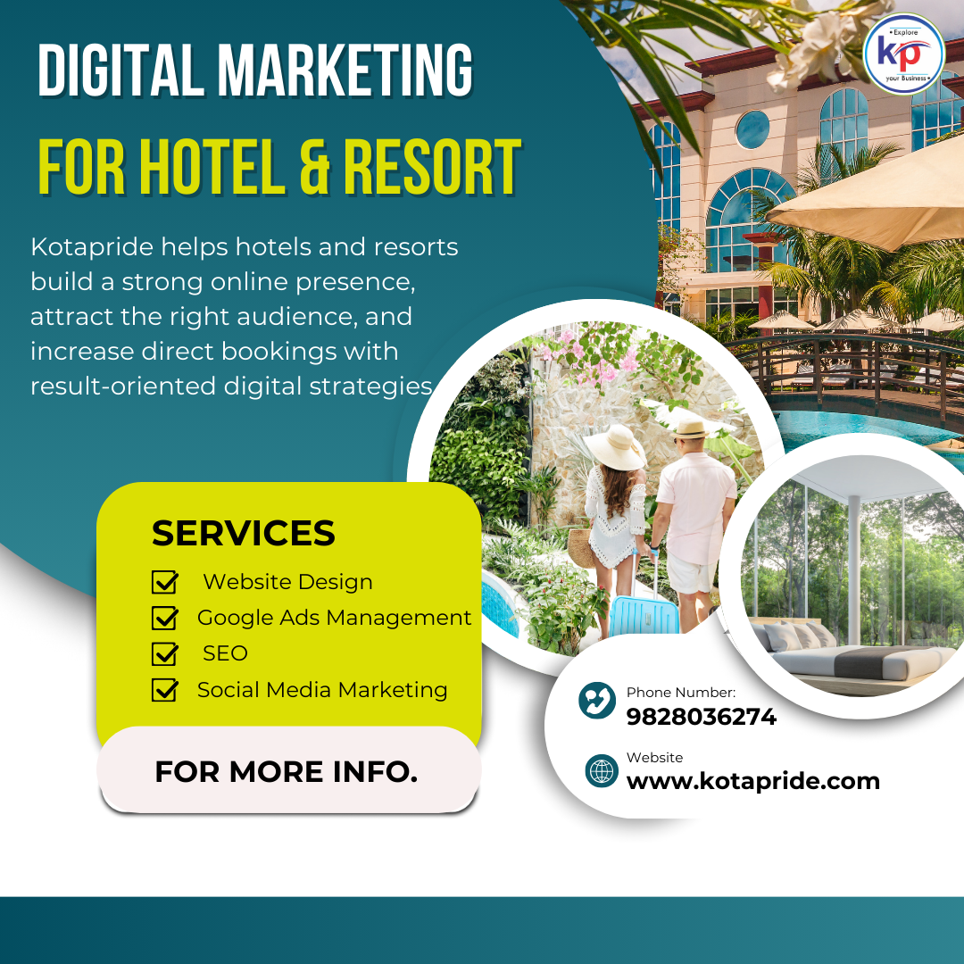Kotapride Digital Marketing Agency helps hotels and resorts build a strong online presence, attract the right audience, and increase direct bookings with result-oriented digital strategies.